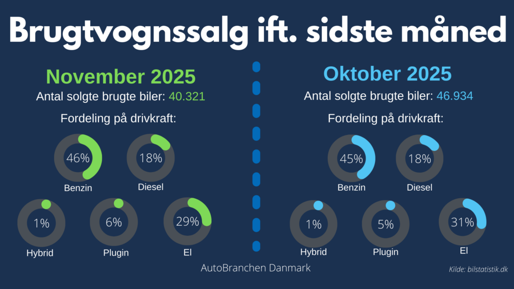I alt skiftede lige over 40.000 brugte biler hænder i november. Ud af dem var knap 30 procent af bilerne elektriske. Og det er faktisk det eneste drivmiddel, der i absolutte tal er gået frem i brugthandlen.